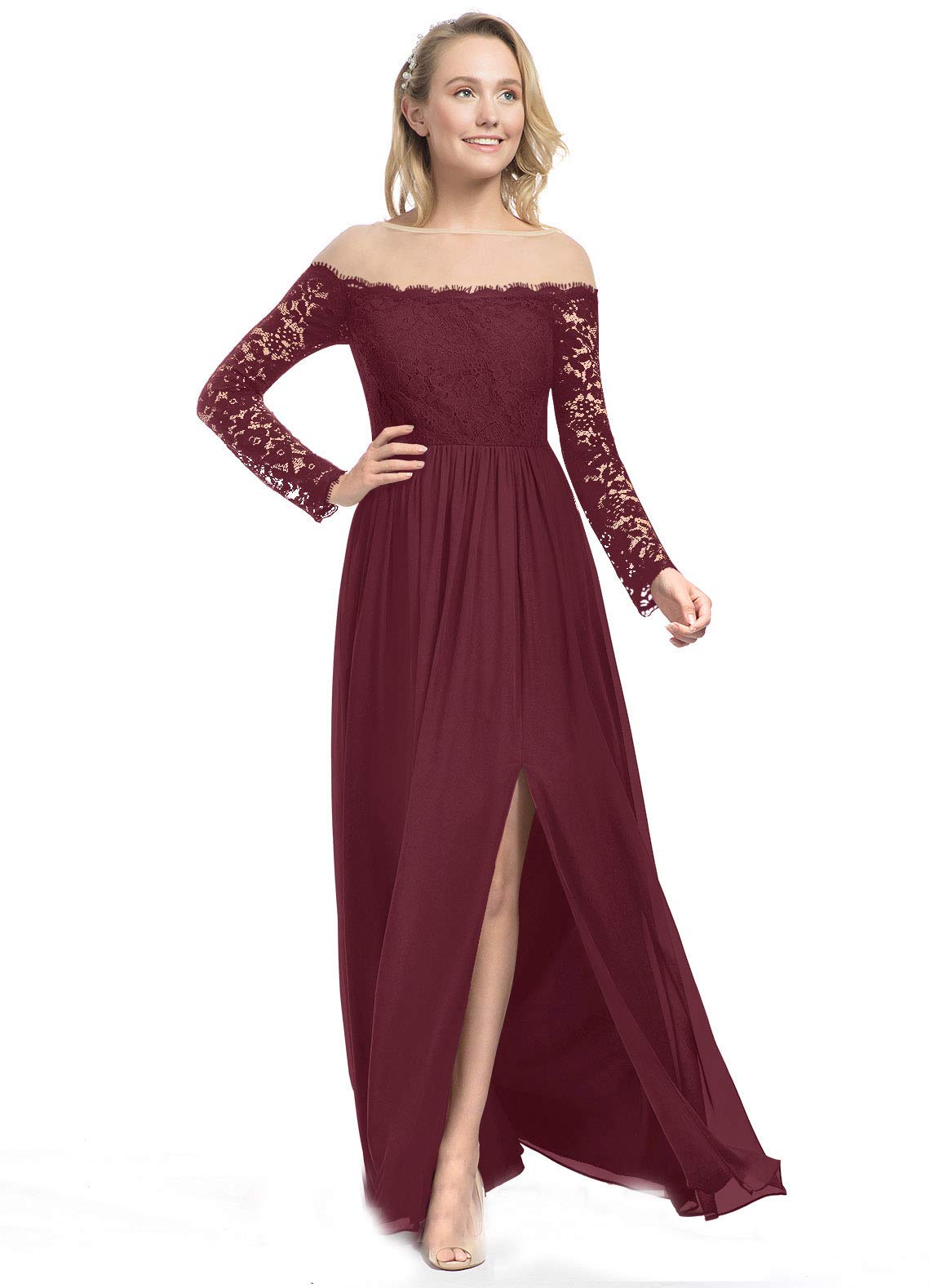 Women Off The Shoulder A Line Long Chiffon Bridesmaid Dress For Wedding Party Cabernet Clothing Shoes Jewelry